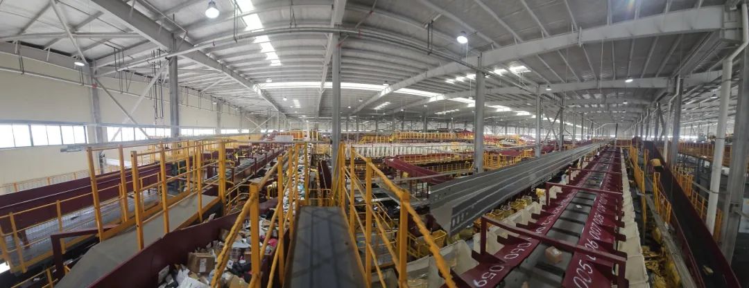 第2层为小件区,采用韵达自主研发的新型三层超高速交叉带,每层拥有100余个供件口平台,最高速度高于行业平均水平约20%,每小时可处理超过20万票包裹,并实时监测快递包裹的位置和运行状态,通过科技创新和数字化改造,提高转运效率和质量。